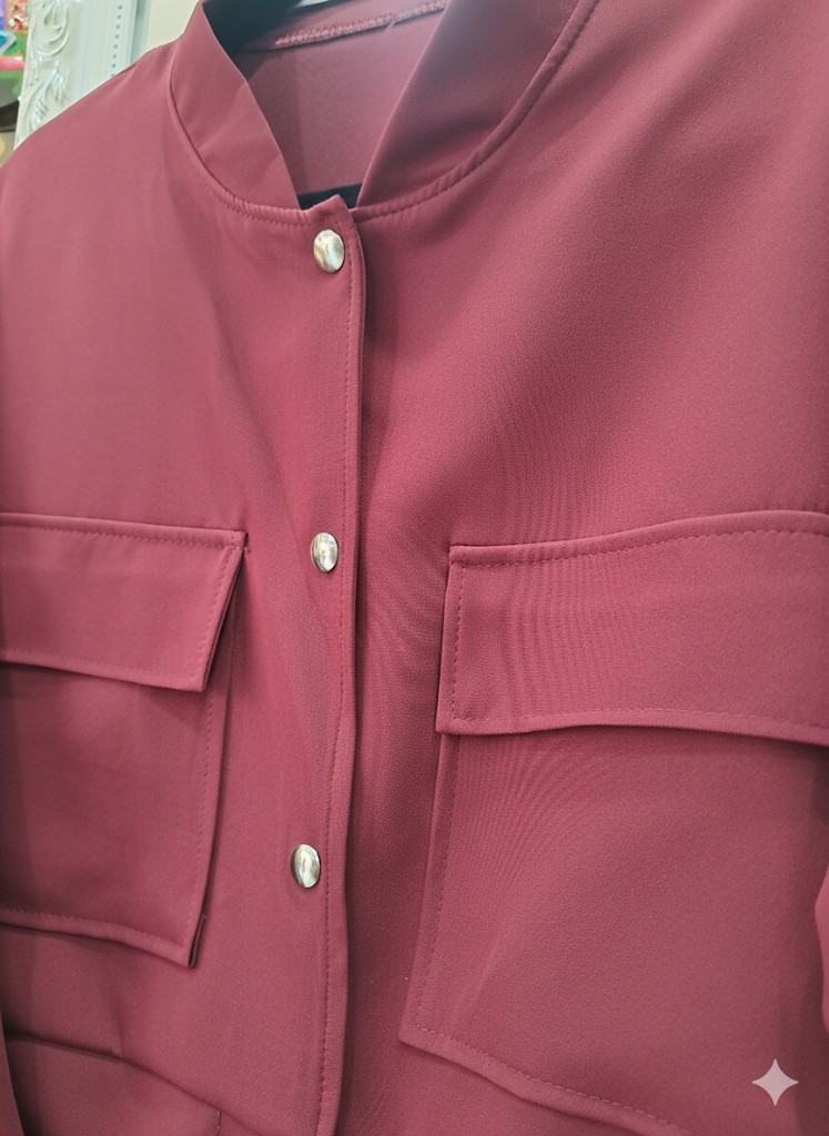 Una pieza para mujeres que pisan fuerte !! Su corte estilo bomber realza la figura y añade actitud. Botones metálicos y bolsillos ( útiles ) marcados, para un look seguro y actual.