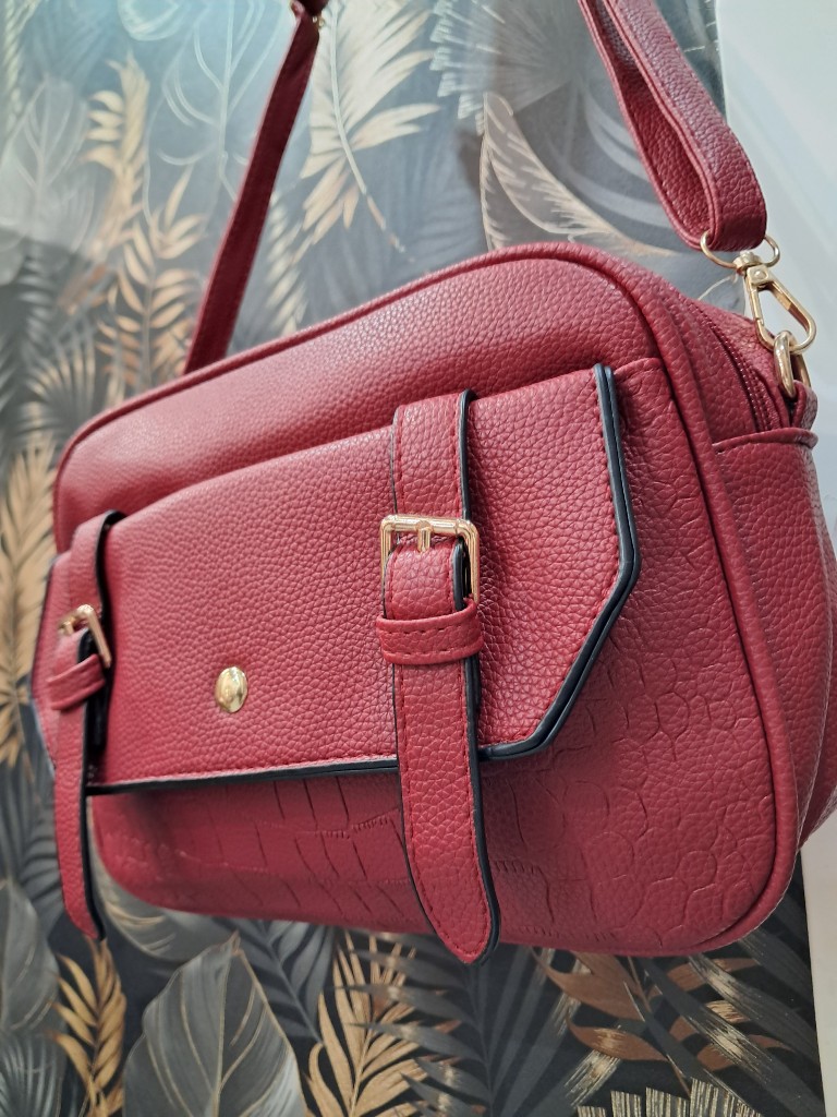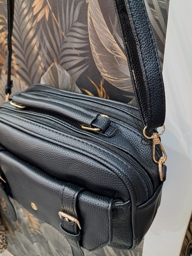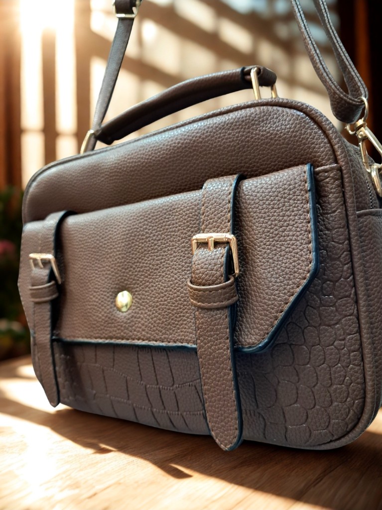 Bolso ligero con múltiples departamentos y efecto piel realista.
