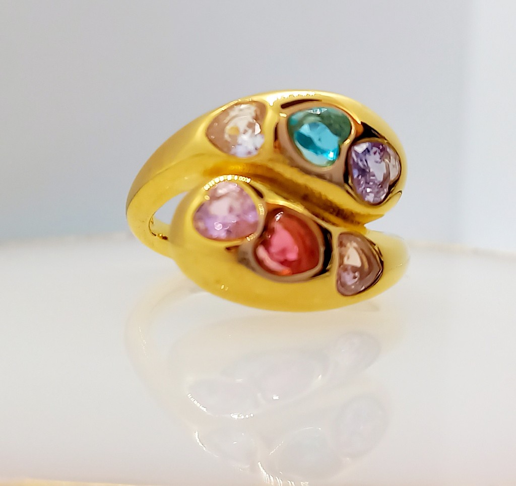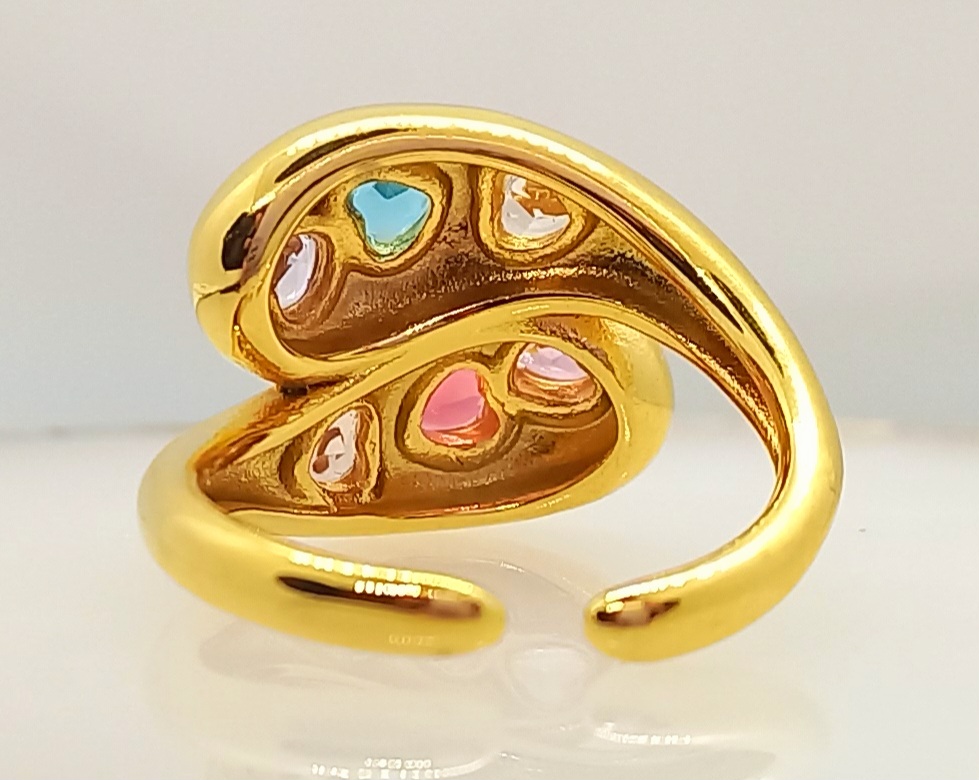 El Anillo Queen Corazones entrelazados es una pieza de joyería elegante y sofisticada que no puede faltar en tu colección. Este anillo está hecho de acero inoxidable hipoalergénico, lo que lo hace seguro para usar en todo momento. Con un diseño ajustable, se adapta perfectamente a cualquier tamaño de dedo.El centro de atención de este anillo son las 6 piedras de corazones en multicolor, que están hábilmente entrelazadas entre sí, creando un diseño único y llamativo. Ya sea que lo uses para una ocasión especial o para darle un toque de glamour a tu look diario, este anillo será el complemento perfecto.Con su elegante diseño y su excelente calidad de materiales, el Anillo Queen Corazones entrelazados es una elección perfecta para aquellas personas que buscan una pieza de joyería versátil y de alta calidad. ¡Hazte con el tuyo hoy mismo y añade un toque de estilo a tu conjunto!