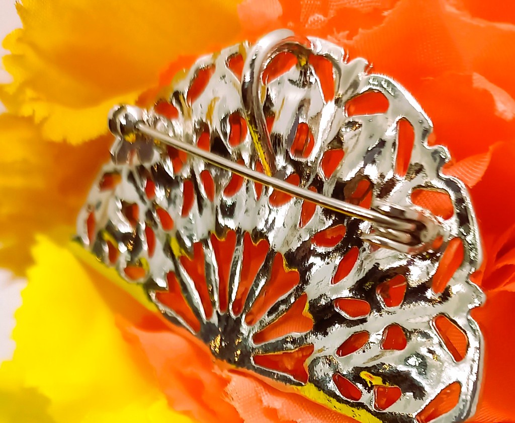 El broche y colgante Abanico son piezas únicas y elegantes que seguramente llamarán la atención donde quiera que vayas. Con su forma de abanico y las brillantes piedras de cristal que los adornan, estos accesorios aportan un toque de sofisticación a cualquier atuendo. La versatilidad de su diseño permite que los utilices de diferentes maneras, ya sea como broche para tu ropa o como colgante para complementar tu collar favorito. Ya sea que los luzcas juntos o por separado, estos accesorios son definitivamente un must-have en tu colección de joyas.