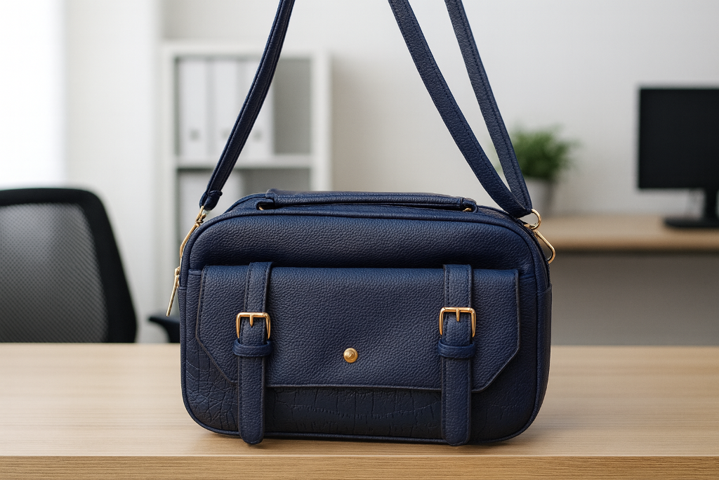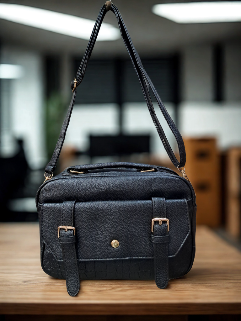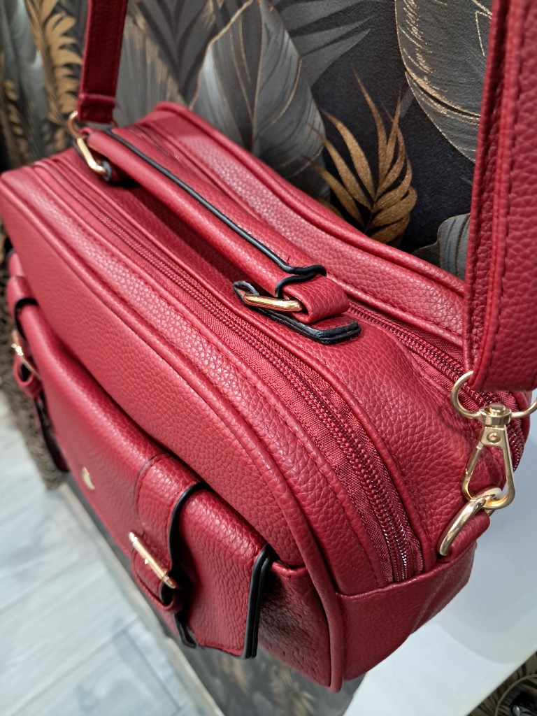 Bolso ligero con múltiples departamentos y efecto piel realista.